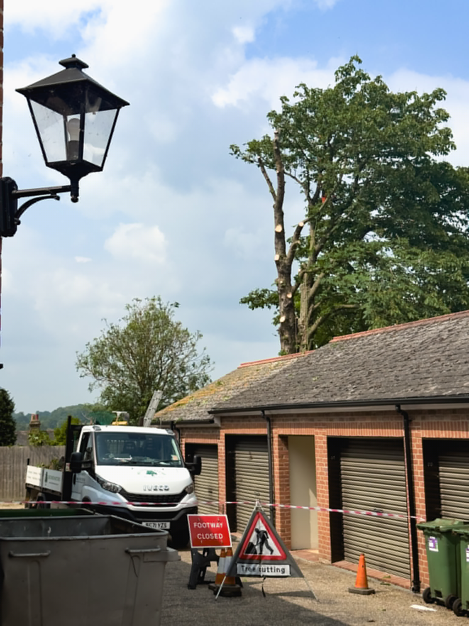 Removal of trees that pose a risk due to storm damage, decay or structural failure. We assess the situation thoroughly and carry out urgent works where safety is a concern.