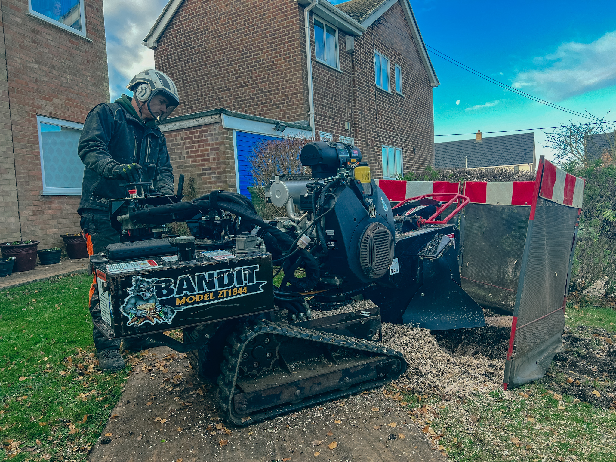 Optional stump grinding following tree removal to eliminate trip hazards, prevent regrowth and prepare the area for replanting or landscaping.